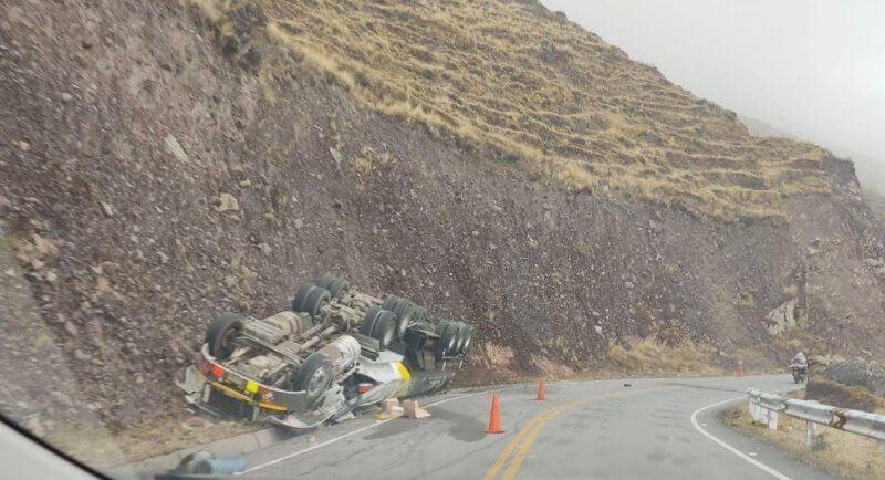 Un nuevo y trágico accidente enluta las carreteras de la selva puneña. La mañana de ayer, el vehículo cisterna de placa AVV-883, perteneciente a la Empresa de Transportes y Logística Avatar, volcó aparatosamente en el tramo Macusani–Ollachea de la carretera Interoceánica, quedando con las llantas hacia arriba.