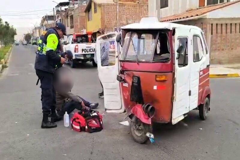 Un mototaxista salvó la vida de milagro este miércoles al ser impactado de forma violenta por un vehículo en el cruce de las avenidas Simón Bolívar y Antúnez de Mayolo. Salvador Quispe Nina conducía la mototaxi de placa B71573 cuando chocó con el auto de placa Z5H-326 conducido por el taxista Juan José Copari Camaña (39).