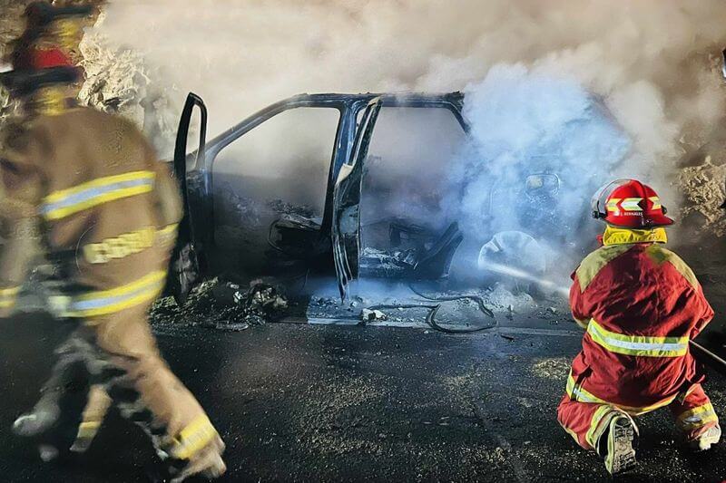 Afortunadamente, sus ocupantes lograron ponerse a salvo antes de que el fuego consumiera totalmente el vehículo.