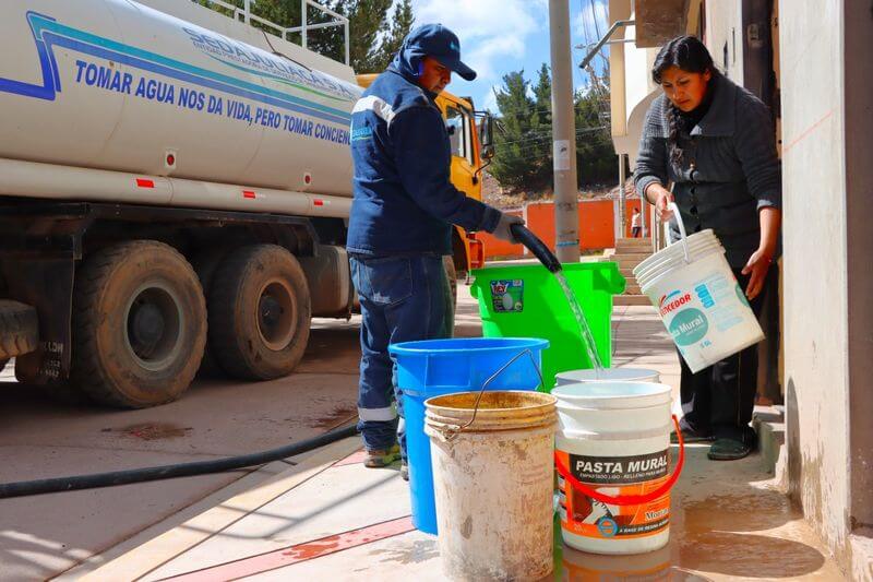 SEDA Juliaca distribuyó agua potable mediante camiones cisterna a los usuarios de las urbanizaciones afectadas por el corte de servicio de agua potable a consecuencia de una falla en la bomba vertical de 14 pulgadas en la planta de producción.