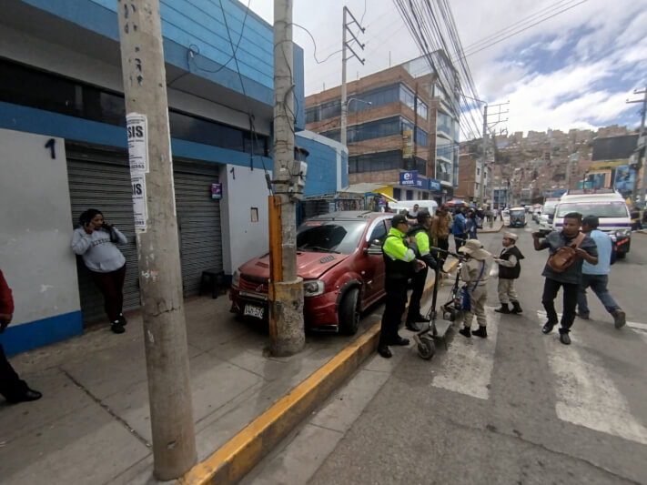 De acuerdo con las primeras versiones, el automóvil Renault color guinda, placa V4M-576, conducido por el SO2 PNP Beto Raúl Osorio Janampa, iba a excesiva velocidad y realizó una maniobra brusca para evitar atropellar a un escolar que cruzó intempestivamente la vía. En esa acción, el vehículo se subió a la vereda, impactó contra un poste de alumbrado público y embistió al transeúnte. El automóvil terminó con severos daños en la parte delantera. El conductor resultó ileso y fue intervenido por agentes de la Policía Nacional.