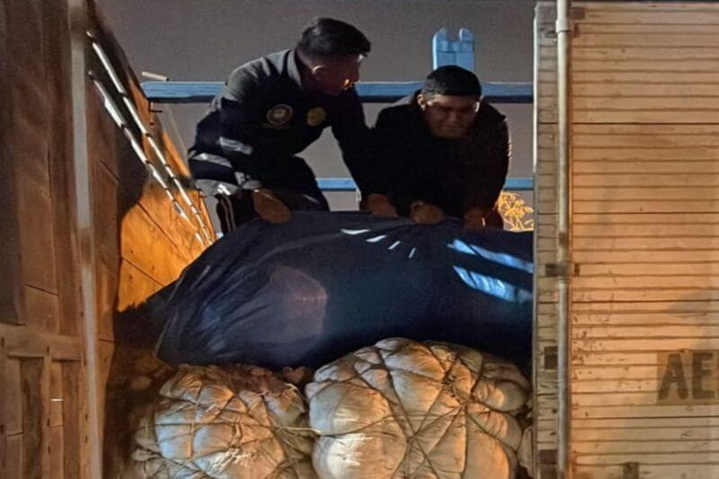 El operativo permitió hallar un vehículo de placa AEF-794 estacionado de norte a sur en estado de abandono. Los agentes del área especializada hallaron una gran cantidad de fardos de regular tamaño con peluches de segundo uso en la tolva de la unidad. Lo que llamó la atención de los policías es que el contrabando se encontraba oculto entre estiércol.