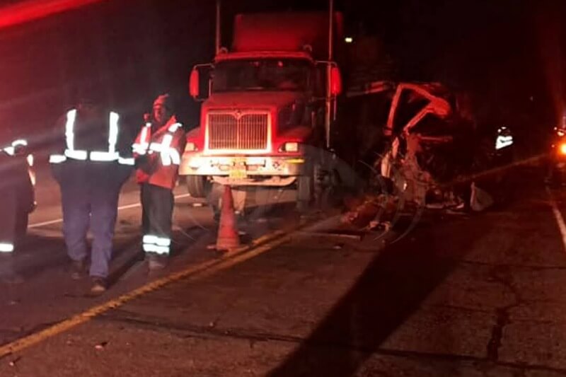 El siniestro ocurrió la noche del miércoles e involucró al camión tracto rojo ARQ-930, conducido por Percy Itusaca Mamani (29), la miniván C9J-968 de la empresa Termales, que trasladaba músicos, y el camión C8H-977.