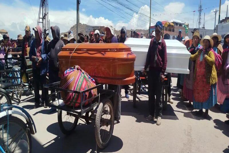 Sobre triciclos, así cruzaron la frontera en Desaguadero los cinco ataúdes con los músicos bolivianos de la agrupación Muñequita Flor’s, fallecidos en el trágico accidente registrado la noche del miércoles en la carretera Binacional, sector que une Puno y Moquegua. Los cuerpos fueron repatriados a Bolivia, donde serán velados y enterrados en El Alto y La Paz.