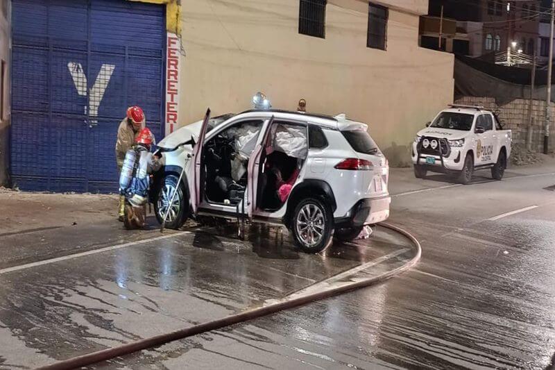 Personal del Cuerpo General de Bomberos Voluntarios extinguió las llamas, que causaron gran alarma porque un grifo se hallaba a pocos metros de distancia. La conductora resultó con diversas contusiones e indicó que se quedó dormida al volante por cansancio, lo que provocó el accidente.