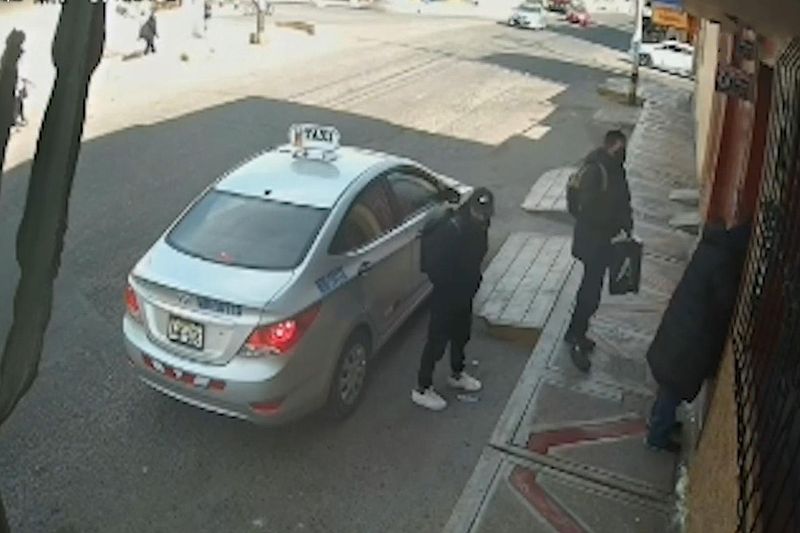 Luego un tercer sujeto irrumpió empujando al agraviado y llegaron tres ladrones más en un auto plomo de marca Hyundai, modelo Accent con casquete de taxi. En total siete delincuentes participaron en el robo a mano armada y fugaron en el mismo vehículo con una parte de su botín.
