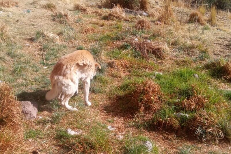 Desde hace varios días, un perrito callejero ha sido visto con signos de malestar y una posible herida que necesita atención veterinaria.