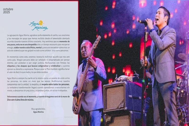 «La agrupación Agua Marina agradece profundamente el cariño, sus oraciones y los mensajes de apoyo que hemos recibido desde el lamentable atentado ocurrido durante nuestro último concierto», sostuvo.