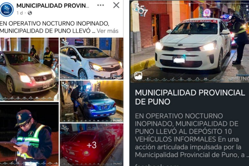 Representantes de la empresa de taxis Kamake Katok denunciaron que la Municipalidad Provincial de Puno publicó en su página de Facebook imágenes de archivo como si correspondieran a un reciente operativo contra el transporte informal.