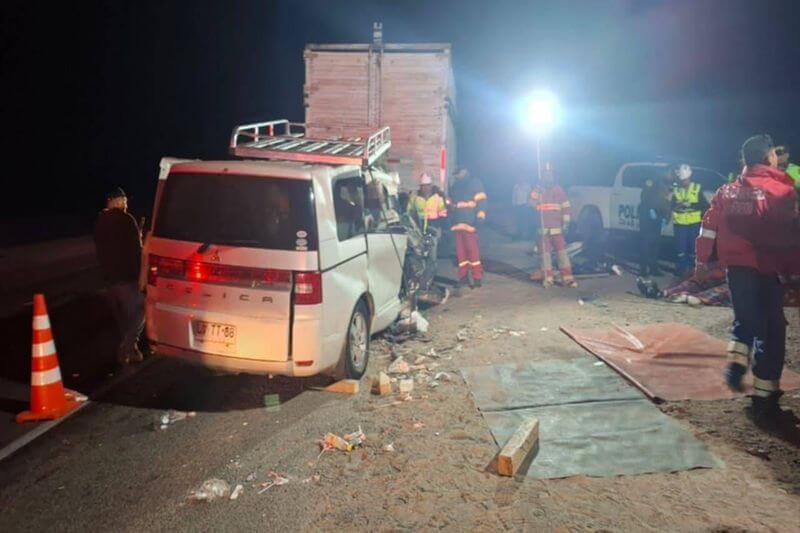 Dos personas de nacionalidad chilena perdieron la vida la noche del último martes en el kilómetro 1320 de la carretera Panamericana. David Arce Castillo (65) y Jaqueline Hevia Cabello (62) viajaban en el vehículo de placa LVTT-88 con destino a Arica cuando impactaron con la parte posterior de un camión cerca de las 20:30 horas.