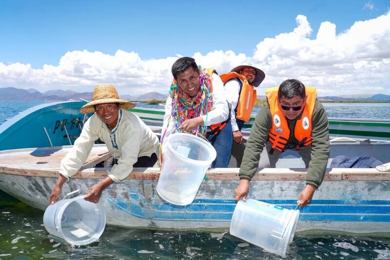 Por su parte, el director regional de la Producción José Antonio Huayta, profesionales del Proyecto Biomasa, Edwin Marca y Willman Mendoza, subrayaron que la recuperación de estas especies contribuye al equilibrio de la cadena alimenticia y refuerza la resiliencia del ecosistema del lago Titicaca, amenazado por la actividad humana el cambio climático.