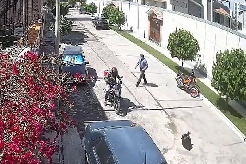 Sin Fronteras publicó entonces, imágenes en las que se aprecia a un hombre bajando de una moto, y al cabo de instantes se acerca a la casa de este familiar. Era Enrique Calmet, quien a través de personas había separado una cita con antelación en el consultorio dental que allí funciona de manera privada.