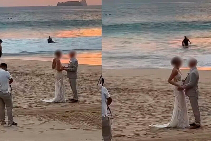 Lo que parecía ser una ceremonia tradicional frente al mar se convirtió en un momento único cuando un hombre disfrazado de Batman apareció caminando por la arena. La pareja de novios, que celebraba su unión en las playas de Ixtapa, en México, quedó sorprendida al ver al “Caballero de la Noche” acercarse en medio de los aplausos y risas de los invitados.