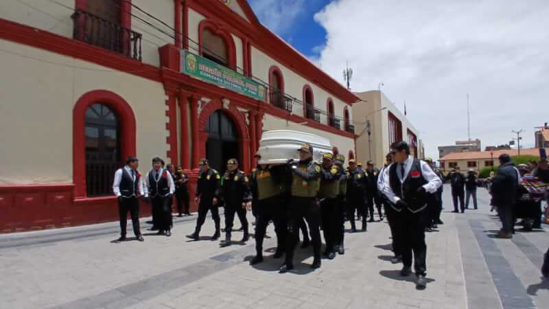 Ayer por la mañana los restos del SO3 PNP Hebert Jeferson Vilca Tapia (25) llegaron a la Comisaría Central de Puno, donde compañeros de la USE Puno, unidad en la que laboraba, le ofrecieron un emotivo homenaje.