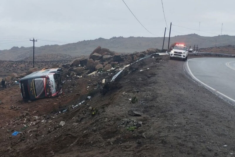 Al menos 10 pasajeros resultaron heridos tras el despiste y posterior vuelco de un bus interprovincial de la empresa Transzela, registrado en el kilómetro 598 de la Panamericana Sur, en el sector del distrito de Atiquipa, provincia de Caravelí.