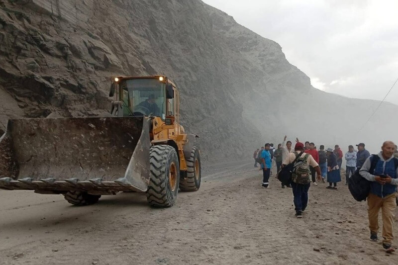 El Consorcio Matarani movilizó maquinaria pesada para iniciar el retiro del material rocoso; sin embargo, el avance es reducido debido a la presencia de transportistas y pobladores que ingresan al área afectada, algunos incluso cruzando sobre las rocas, lo que impide un trabajo seguro.