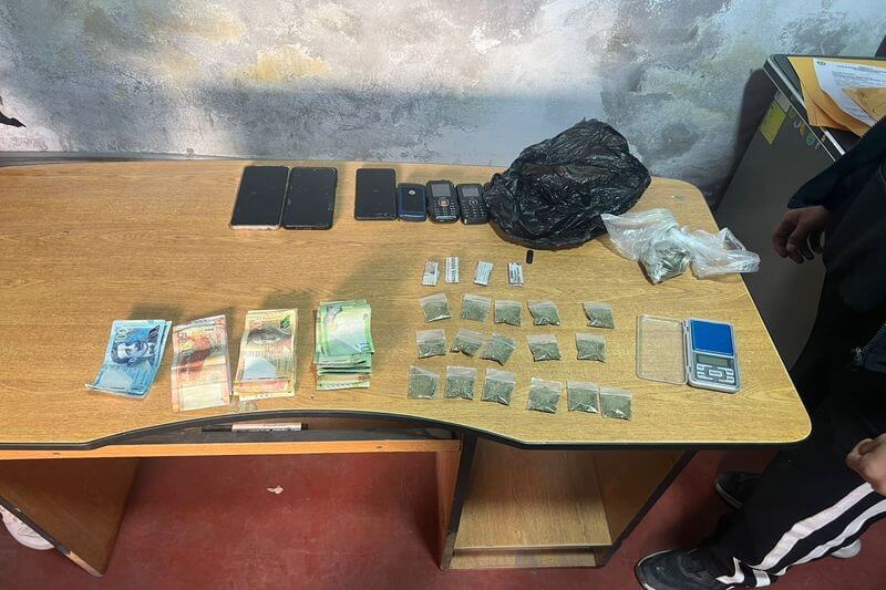 Durante el registro personal, los efectivos encontraron, entre las pertenencias de los sospechosos, 9 envoltorios tipo “paco” conteniendo pasta básica de cocaína (PBC) y 16 bolsas tipo ziploc que contendrían marihuana. Además, se le incautaron 8 equipos celulares y S/708 en efectivo.