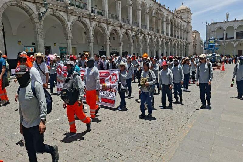 Centenares de obreros de construcción civil marcharon por las calles de Arequipa para rechazar el incremento salarial propuesto por la Cámara Peruana de la Construcción (Capeco), el cual consiste en S/ 1.10 para operarios, S/ 1.00 para oficiales y S/ 0.90 para peones. Los trabajadores calificaron la oferta como insuficiente ante el alza del costo de vida y la pérdida del poder adquisitivo de los jornales.