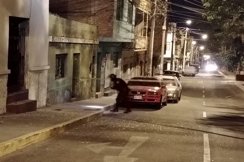 Las cámaras de vigilancia de la avenida Goyeneche captaron el preciso instante en que un sujeto llega caminando con una bolsa, coloca un artefacto explosivo en la puerta de la casa de un abogado y huye a velocidad segundos antes de la detonación. El atentado ocurrió la madrugada de ayer, en Miraflores.