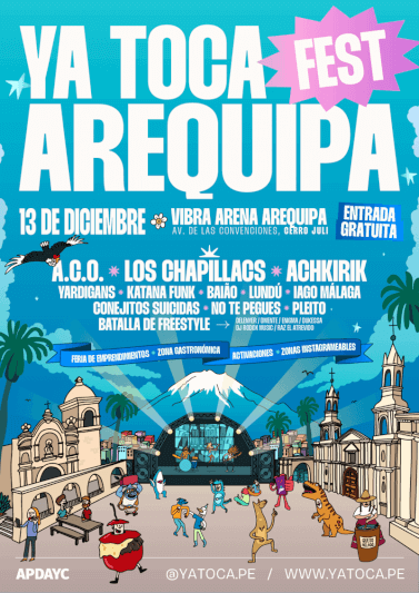 La juventud toma el escenario. Este sábado 13 de diciembre desde el mediodía, el Vibra Arena Arequipa, en Cerro Juli, recibirá a más de 12 artistas nacionales para el Ya Toca Fest Arequipa 2025, la tercera parada de un proyecto que durante todo el año ha escuchado a jóvenes en distintas regiones del país para amplificar sus inquietudes, ideas y propuestas.