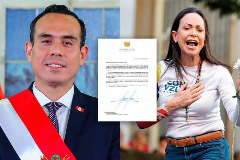Jerí también transmitió el aprecio del pueblo peruano hacia la dirigente opositora. “La acompaña con esperanza y respeto en sus esfuerzos por construir una Venezuela libre, democrática y en paz”, indicó el presidente, quien cerró su mensaje expresando sus “mejores deseos de éxito en esta noble tarea”.