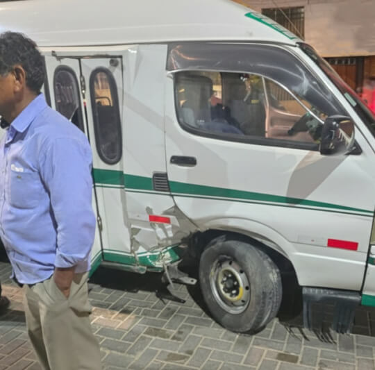 El accidente ocurrió a las 22:50 horas del sábado cuando el auto particular de placa AHL-229 chocó contra la llanta delantera derecha de la combi de la ruta 102 con matrícula Z4S-779 en la intersección de las avenidas Municipal y Simón Bolívar.