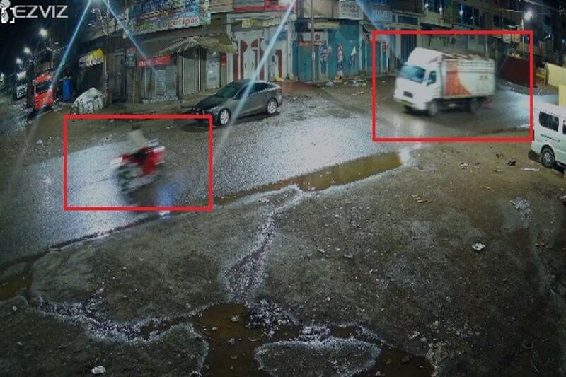 Juliaca. Imprudencia y muerte. Las cámaras de videovigilancia captaron el instante en que un joven motociclista perdió la vida tras chocar contra la parte lateral izquierda de un camión en la salida a Huancané, en plena lluvia y durante la madrugada.
