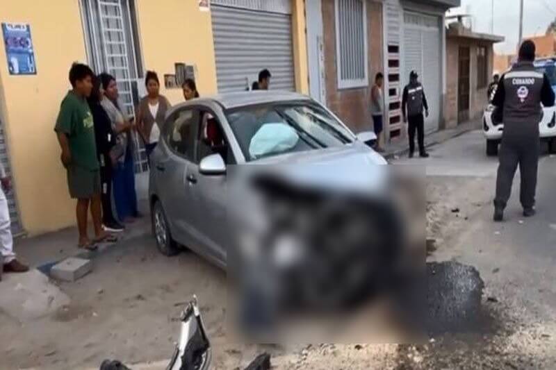 Un vehículo terminó con la parte delantera destrozada tras impactar contra el muro de una vivienda. La conductora del auto de placa Z7F-187 lo despistó al evitar atropellar a un can. Pese al violento impacto la mujer no sufrió lesiones de consideración.